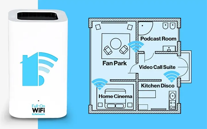 G Network's Full-On WiFi package offers a WiFi 6 mesh router system, which ensures seamless connectivity throughout your home.